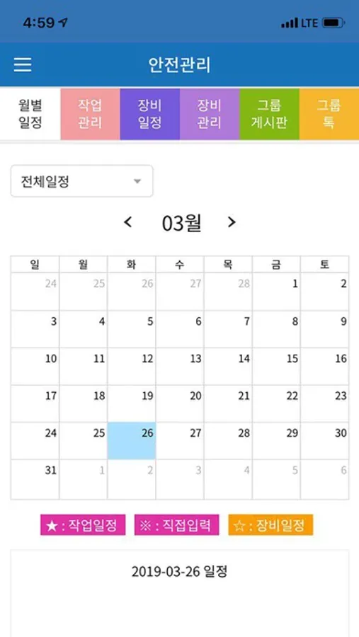 ∇ 안전관리 커뮤니티 : 같은 그룹끼리 일정 및 자료를 공유하고 확인 하세요.