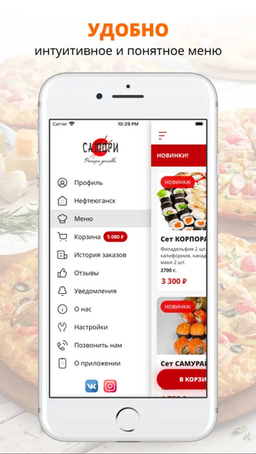 Наши курьеры наизусть знают все офисы Нефтеюганска и доставляют пиццу прямо вам в руки. И не важно где вы находитесь, на самом высоком доме Нефтеюганска или снимаете небольшой офис в пятиэтажке. Проводите корпоратив или отмечаете день рождения? Или просто засиделись на работе до поздна? Мы готовим нашу суши, пиццу и салаты быстро и заказ будет у вас уже через час после вашего звонка.