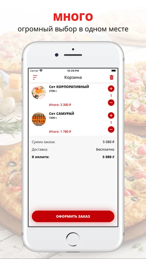 Просто установите наше приложение, выберите любимые блюда из нашего меню и оформите заказ на доставку еды всего в пару кликов!