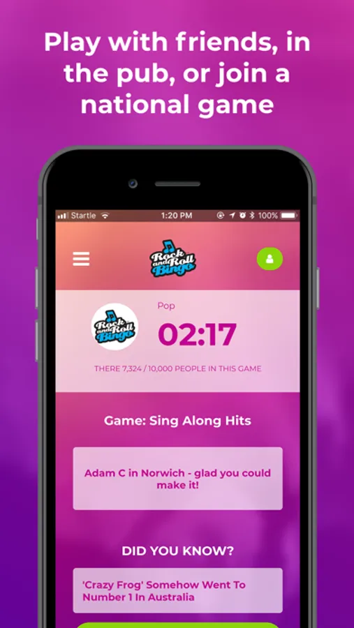 With this app, you'll be able to join in with any live Rock and Roll Bingo games in a participating venue. When you first launch the app, we'll help you find the location and time of the next game taking place near you!