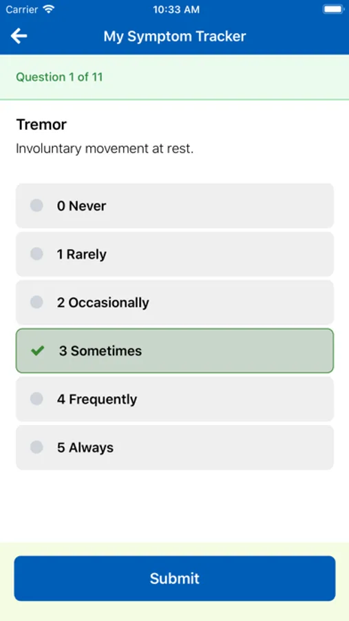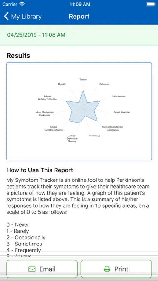 Over time, your reports generated in the app can assist your healthcare team to better understand prevalence of your PD symptoms.
