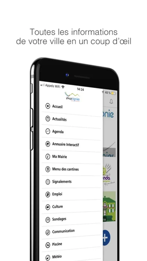 L'application de la ville de Marignier vous propose les actualités, l'agenda des manifestations, les numéros utiles des services de la mairie, des notifications en temps réels et bien plus encore... : restez connecté avec votre ville !