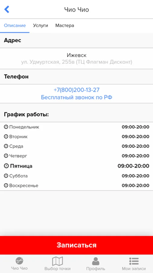 В приложении можно записаться онлайн, посмотреть режим работы, мастеров или услуги любой работающей точки сети.