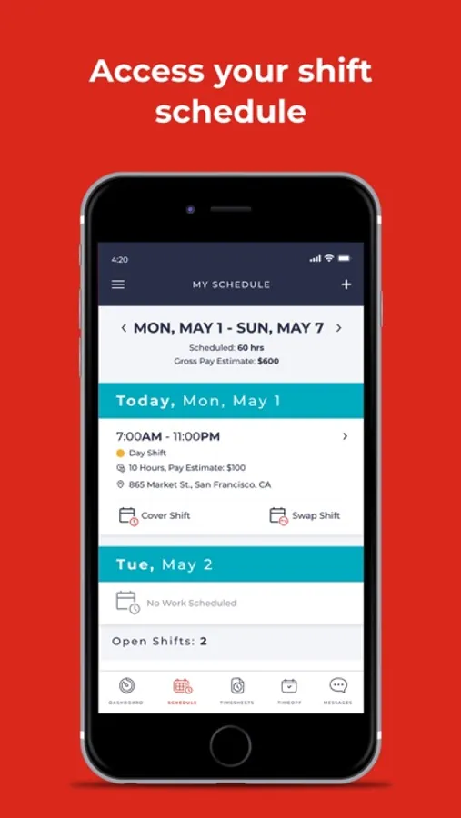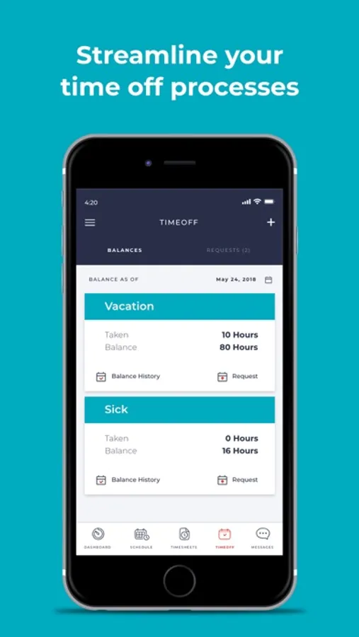 Enable your employees to quickly book time off from their mobile device or from the web. Managers can stay on top of employee availability by viewing requests in real-time and approving or rejecting requests.