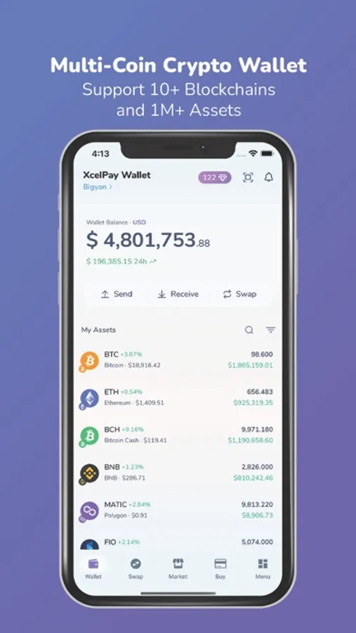 XcelPay Wallet is integrated into an easy to use, crypto wallet that is enabled for both mobile and tablet use.