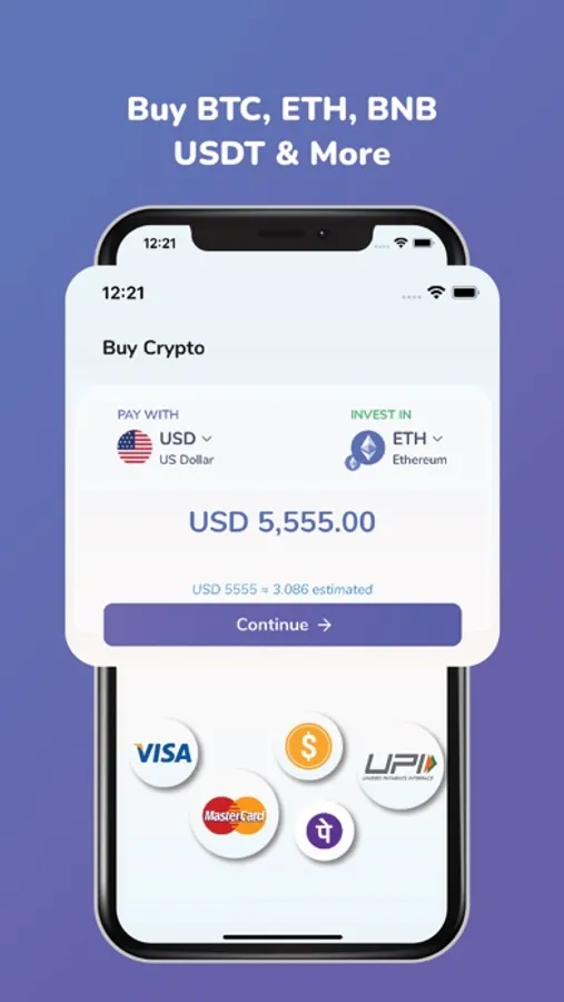 - Buy crypto with Debit/Credit cards & Bank account.