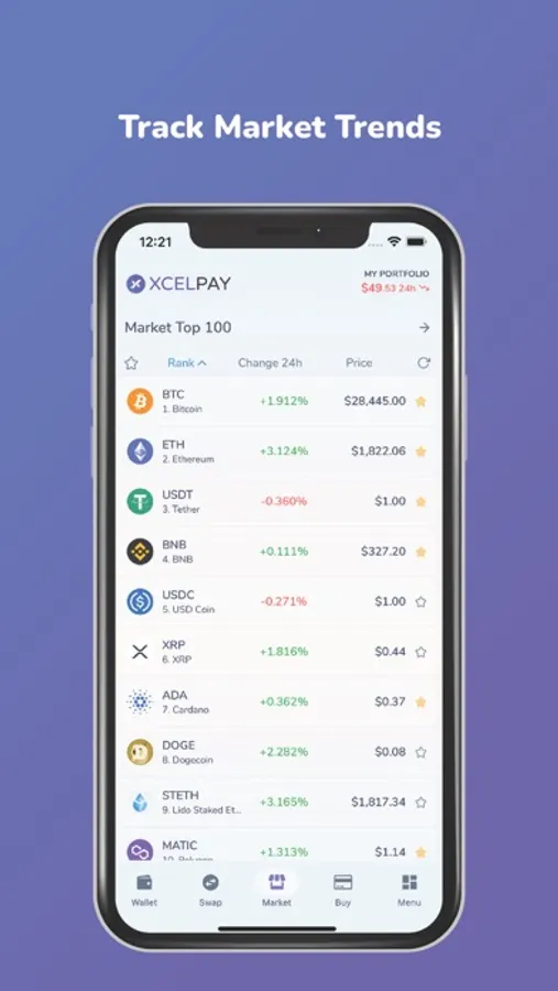 Get real-time data on your portfolio investment performance and track market data over time, all from your XcelPay Wallet.