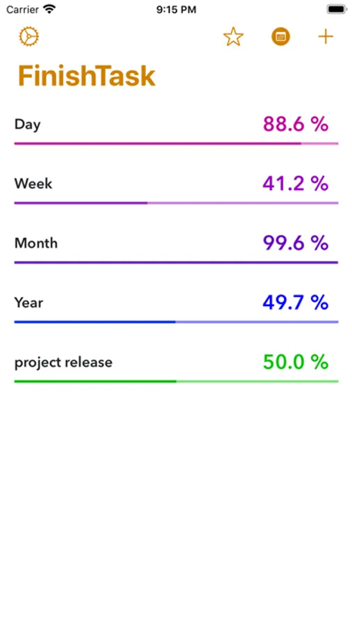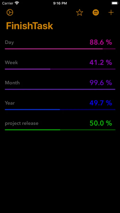 Initially, in addition to your goals, the application added trackers for the outgoing day, week, month, quarter and year. They are here for clarity and, if necessary, are easily disabled in the application settings.