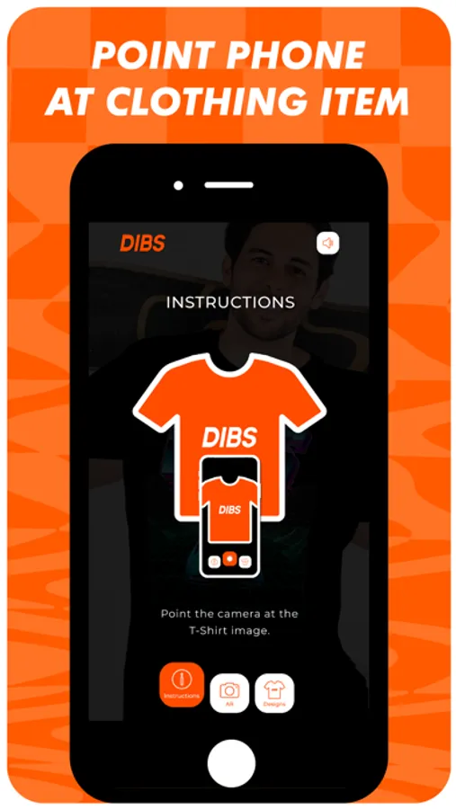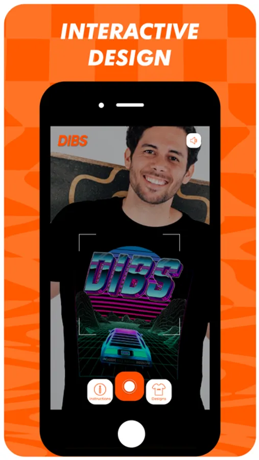 Experience augmented reality graphics like you've never seen them before! DIBS introduces our collection of wearable Augmented Reality t-shirts. An experience unlike any seen before, where graphics actually come to life! See for yourself, it's easy! First, open the DIBS app and the home screen will appear. Second, point your phone's camera at the graphic or garment that you would like to see come to life. Third, the graphic and soundtrack will now activate and begin playing on your phone screen. Move the phone around to see the Augmented Reality visual in a more 3D perspective. Tap the screen to unlock more features of the AR graphic. Make sure to screen shot or screen record and share it with your friends via our shareable social media links built into the app!
