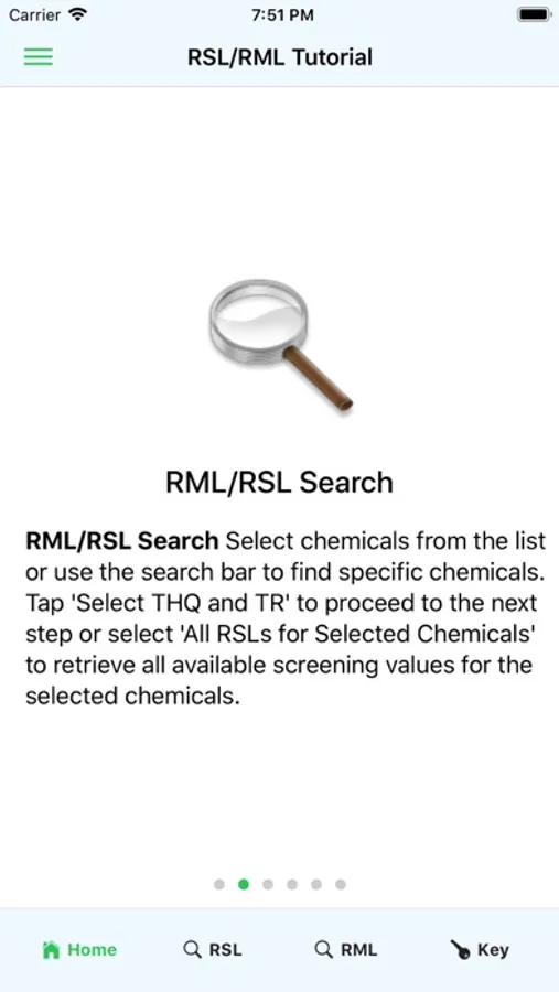 US EPA Regional Screening Levels and Removal Management Levels The US Environmental Protection Agency Regional Screening Levels (RSLs) are chemical-specific concentrations for individual contaminants in air, drinking water and soil that, if exceeded, may warrant further investigation or site cleanup. The Regional Removal Management Levels (RMLs) are chemical-specific concentrations for individual contaminants in tap water and soil that may be used to support the decision for EPA to undertake a removal action. The RSLs and RMLs are risk-based levels, calculated using the latest toxicity values, default exposure assumptions and physical and chemical properties. They are updated twice a year. For more information, please see the RSL (https://www.epa.gov/risk/regional-screening-levels-rsls) and RML (https://www.epa.gov/risk/regional-removal-management-levels-chemicals-rmls) websites.