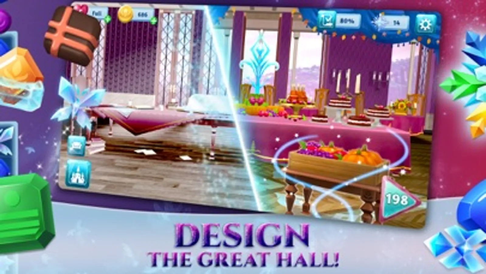Discover the exciting fun by diving into the adventure of the World of Frozen. Play match 3 games to design and decorate the Frozen castle and Kingdom! Explore new worlds as you play this epic Frozen game!