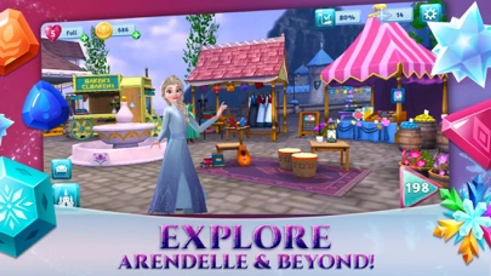 Explore and embark on an all-new Frozen adventure that takes you to new and familiar locations around Arendelle and the entire Frozen world. Play hundreds of match-3 games and earn snowflakes to decorate the castle and make it look amazing!