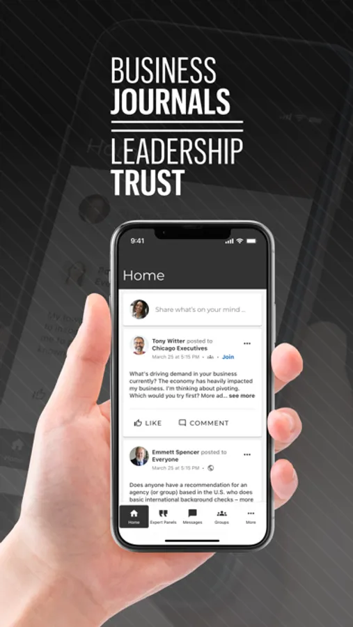 The Business Journals Leadership Trust mobile app is a secure environment where Business Journals Leadership Trust members can collaborate, network, and share information. The app is used to streamline and facilitate communication through private messaging and group discussions.