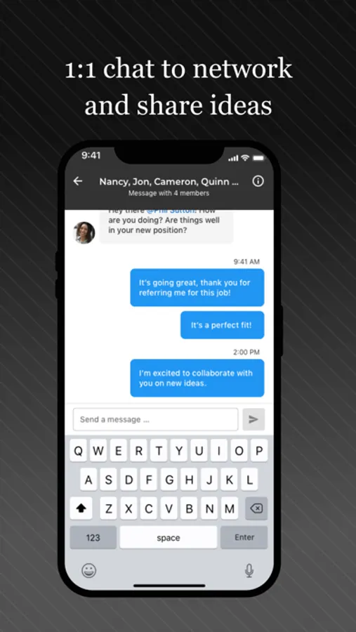 - Conversations via 1:1 private messaging