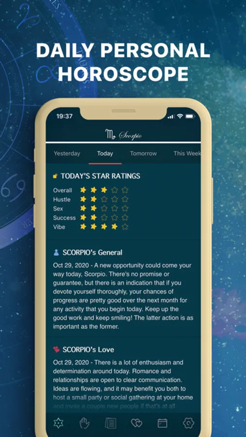 The app provides contents and services about astrology, biorhythm, numerology and palmistry.