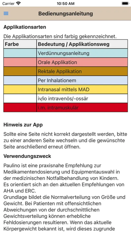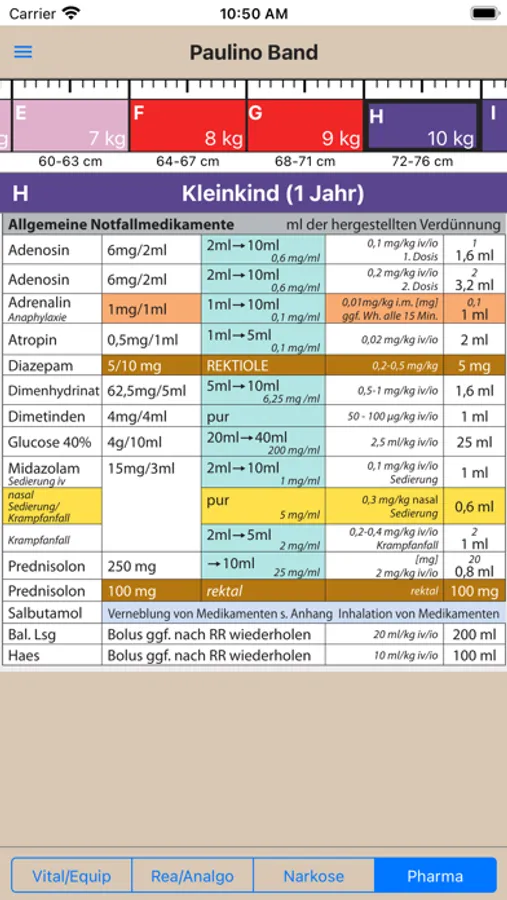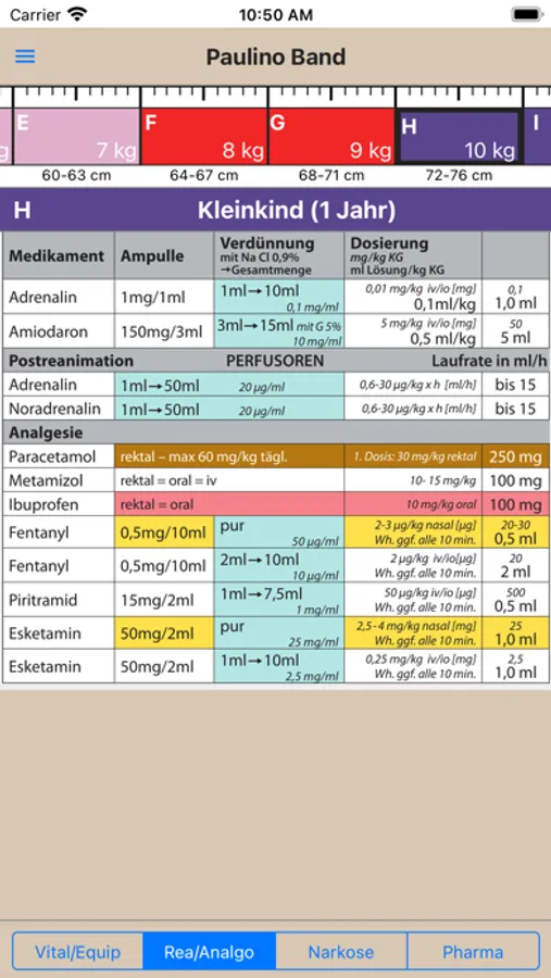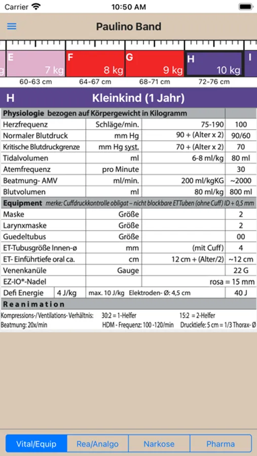 Paulino® gibt umfassende Empfehlungen zum Einsatz von Equipment und Medikamenten ausgehend von der Körpergröße des Patienten.