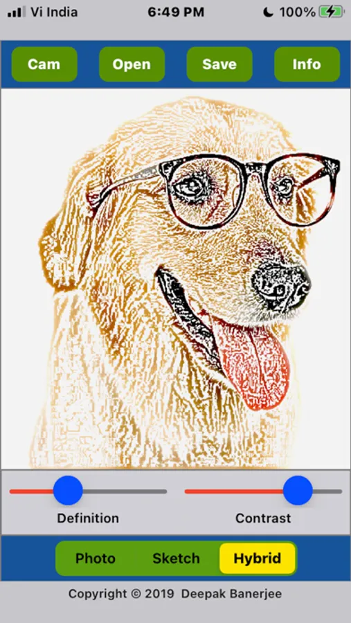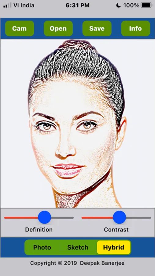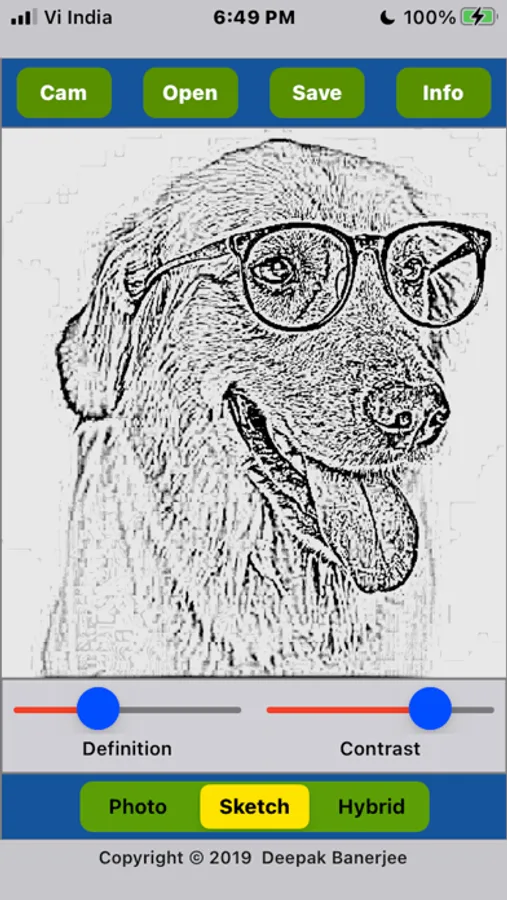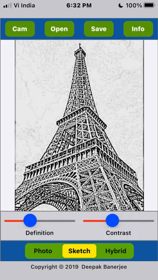 - You can vary the ‘Definition’ and ‘Contrast’ sliders to adjust the look of the sketch.
