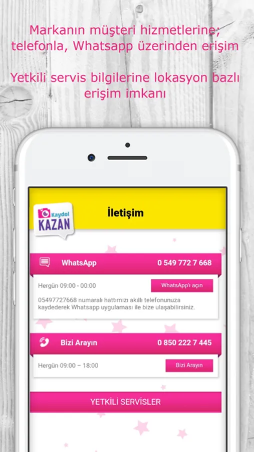 Markanın müşteri hizmetlerine telefonla, Whatsapp üzerinden erişebilirsin. Ayrıca markaya ait teknik servis bilgilerine lokasyon bazlı erişim sağlayabilirsin.