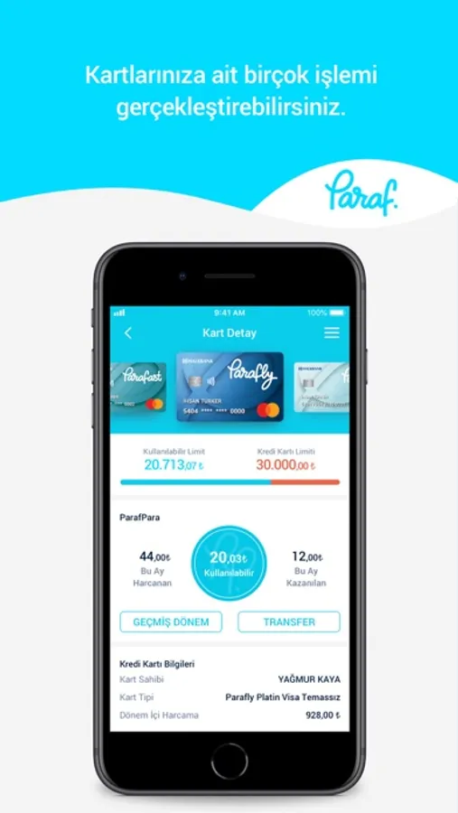 • Kredi kartı borç ödeme, limit artırım, işlem taksitlendirme yapabilir, ParafPara transfer işlemlerinizi gerçekleştirebilirsiniz.