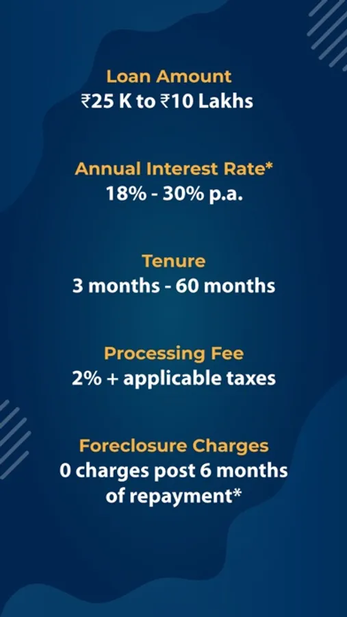 At LoanTap, we give loans between INR 25,000 to INR 10,00,000. Our Interest Rates start from 18% and go up to 30% per annum depending upon products, personal circumstances, credit assessment procedures and other related factors. We charge processing fees at 2%+ applicable taxes; on the gross loan amount sanctioned.