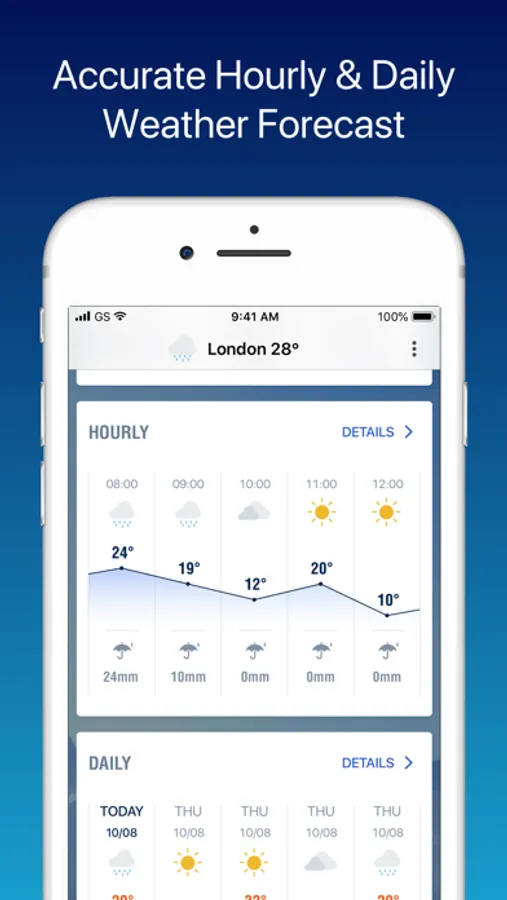 Before you go out, you can check this free weather app to get prepared for unexpected weather changes. In addition, you can also check hourly temperature and rain probability to plan your outdoor activities.