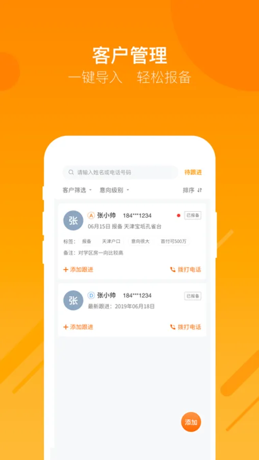 客户状态:帮助经纪人第一时间了解客户购房状态,查看客户状态提示,客户状态反馈。