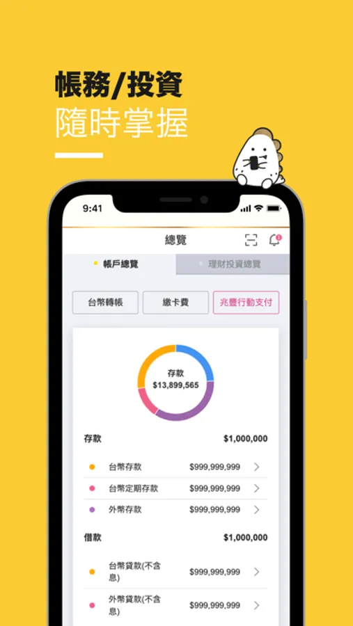 台/外幣存款、信用卡、基金/理財商品、貸款等即時明細查詢服務,以及