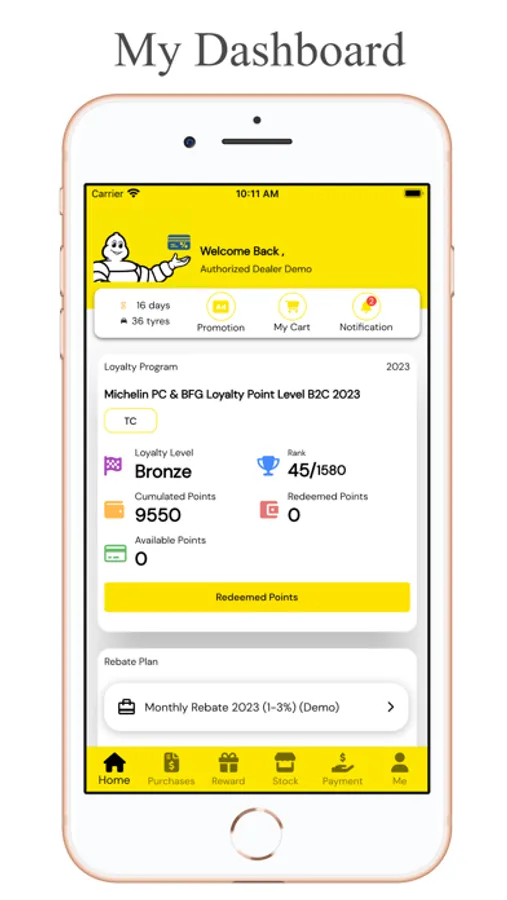 An easy app to quickly check your Michelin tires rebate. The more you buy, the more rebate you get. A rebate program designed for all the customers of our premium partners. Register today !