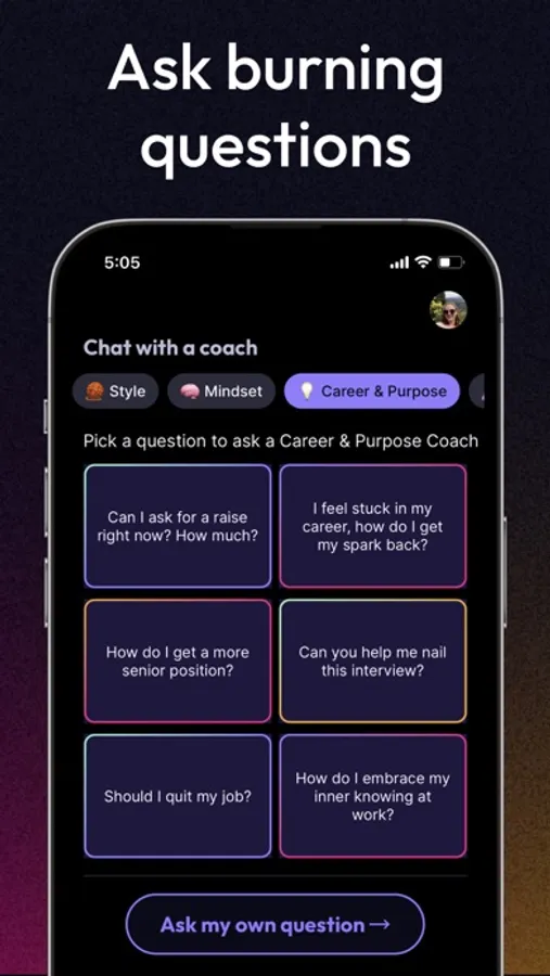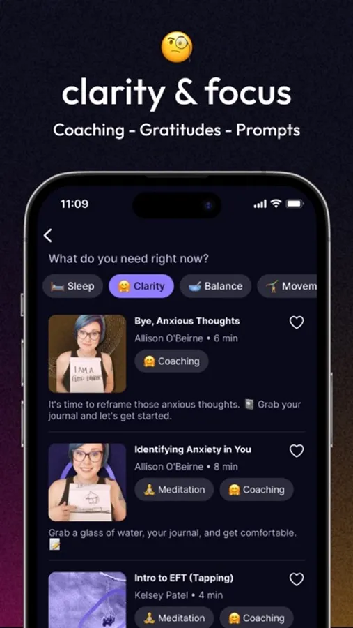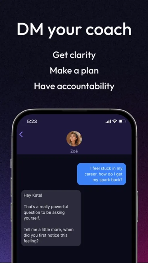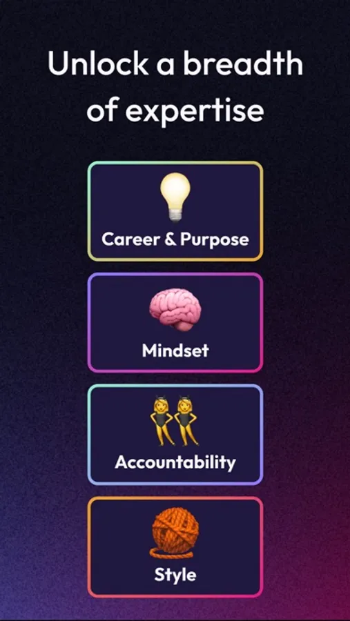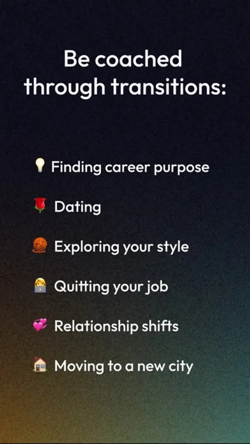 1. Find your coach: Everyday challenges are less stressful with a coach. Choose the type of expertise you'd like in this moment. Select from Health, Mindset, Accountability, Career & Purpose, Love & Dating, and Spirituality Coaches.