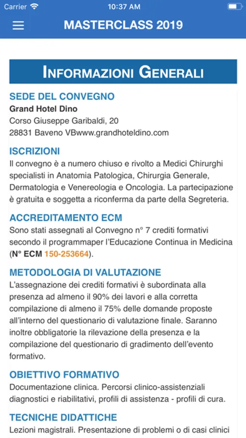 La App è stata realizzata appositamente per il Convegno Masterclass 2019, che si terrà a Baveno in data 10-11 maggio 2019.