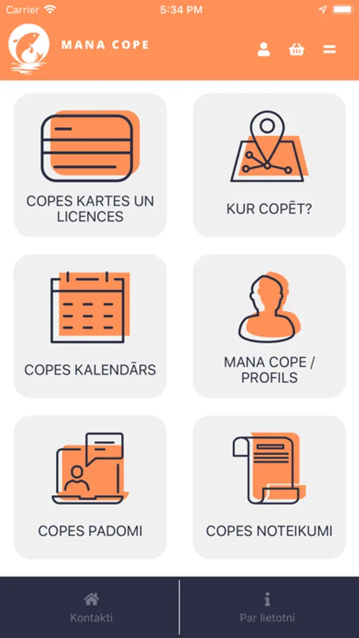 1. Copes kartes un licences - var iegādāties makšķerēšanas karti un licenci. Ātri un ērti iesniegt copes licenču atskaiti;