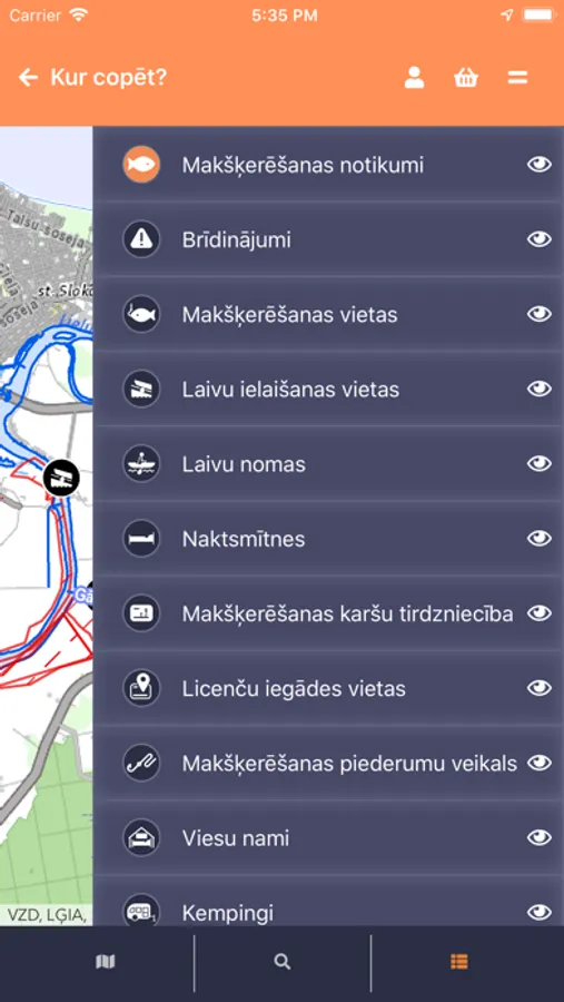 - meklētājā ir iekļauta informācija par makšķerniekiem draudzīgām vietām - makšķerēšanas notikumiem, slipiem, laivu nomām, naktsmītnēm, licenču iegādes vietām utt;