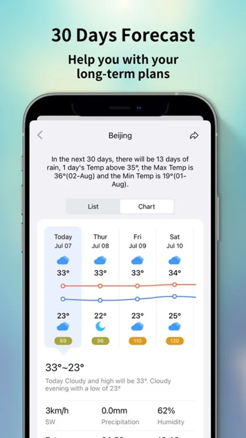 QWeather supports weather data query for millions of cities around the world. Even if you are drifting in the ocean one day, you can pull out your phone to check the sea surface temperature and wave flow direction :P