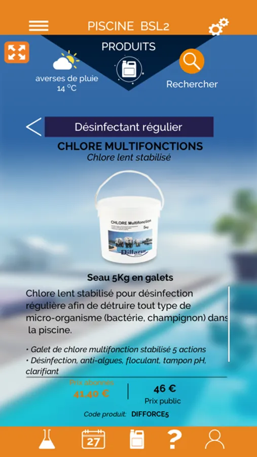 • Recherchez les opérations les plus courantes (utilisation des produits, équilibrage de l'eau, ...)