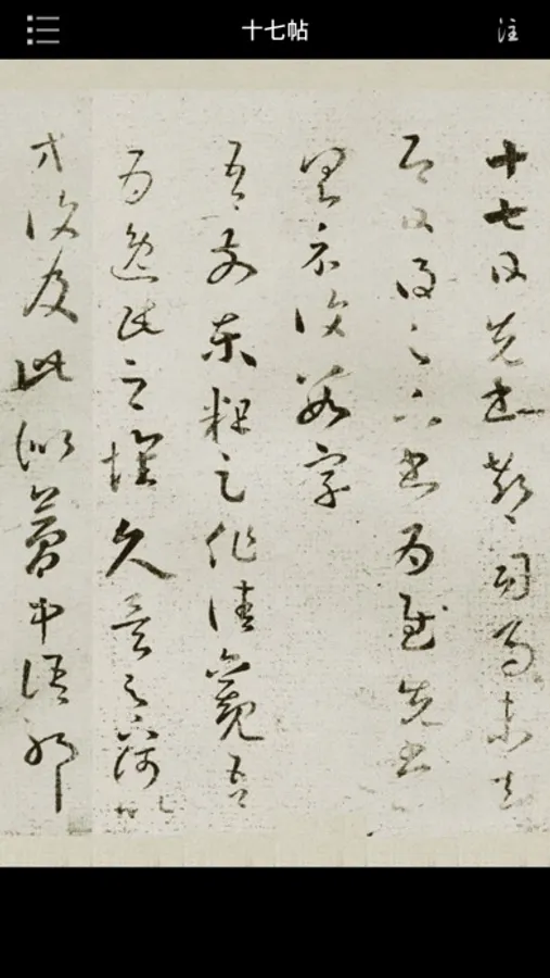 《十七帖》是王羲之草书代表作,因卷首由“十七”二字而得名。《十七帖》一直作为学习草书的无上范本,被书家奉为“书中龙象”,是临习草书的不二法门。