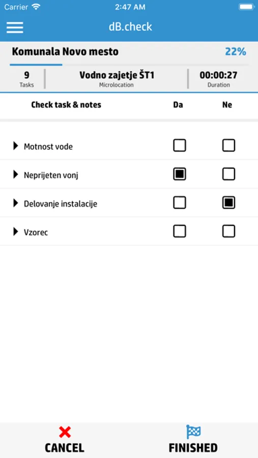 dotBusiness checkpoint je mobilna aplikacija za beleženje evidenc izvajanja nalog ali meritev.