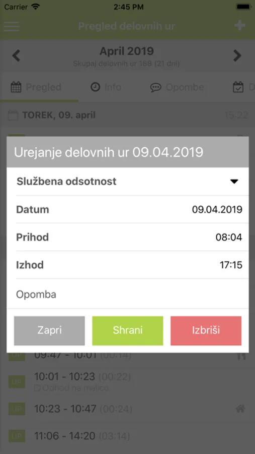 Poleg enostavnega evidentiranja delovnih ur zaposlenih s strani podjetja, aplikacija omogoča tudi dostop vsakemu zaposlenemu do lastnih delovnih ur, kontrole dopustov, bolnišk, potnih nalogov, ...