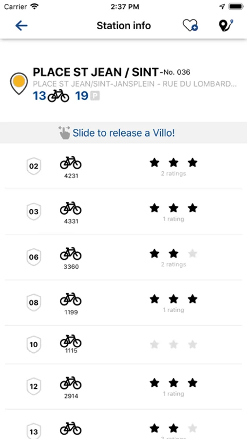 When you arrive close to the station, press “Unlock a Villo!” and choose your Villo! from the list of available bikes there.