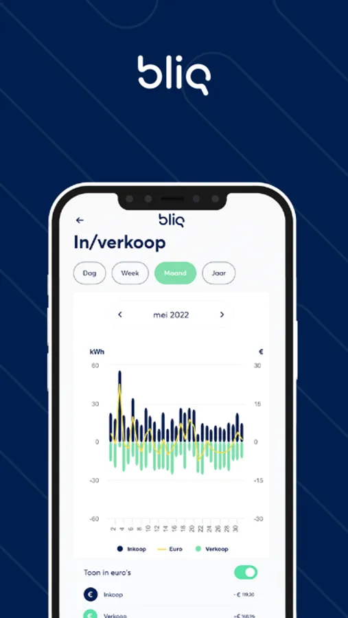 Geheel automatisch met je thuisbatterij elektriciteit in- en verkopen, op basis van zonnepanelen & dynamisch energiecontract. Zo verdienen Bliq klanten gemiddeld €42 tot €124 per maand én besparen daarmee op de energierekening. Je hebt met Bliq altijd de goedkoopste stroom van de dag.