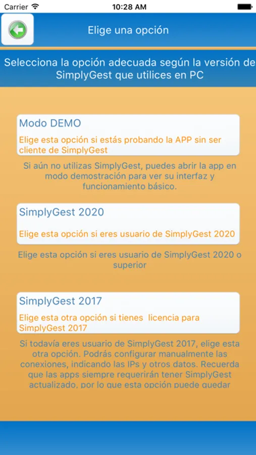 NOTA: Esta app necesita SimplyGest 14.9.6 o superior en el PC Servidor.