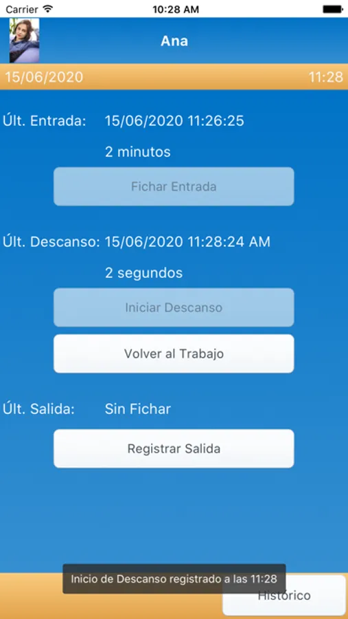 Registra la entrada, la salida y los descansos de tu horario laboral desde tu móvil, guardando el historial directamente en SimplyGest, así como la ubicación (geolocalización) y otros datos que ayudan a llevar un registro más preciso.