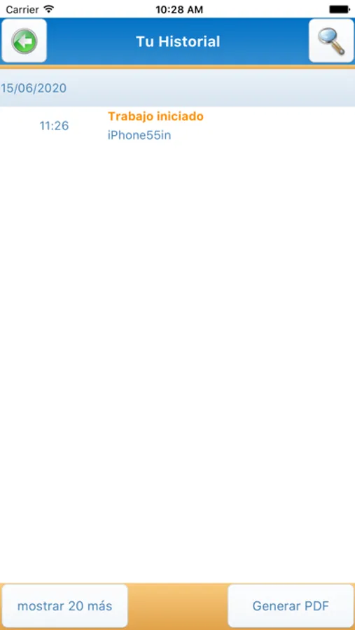 Podrás mostrar tu historial de entradas, salidas, etc. o incluso obtener un PDF con tu histórico desde tu propio móvil.