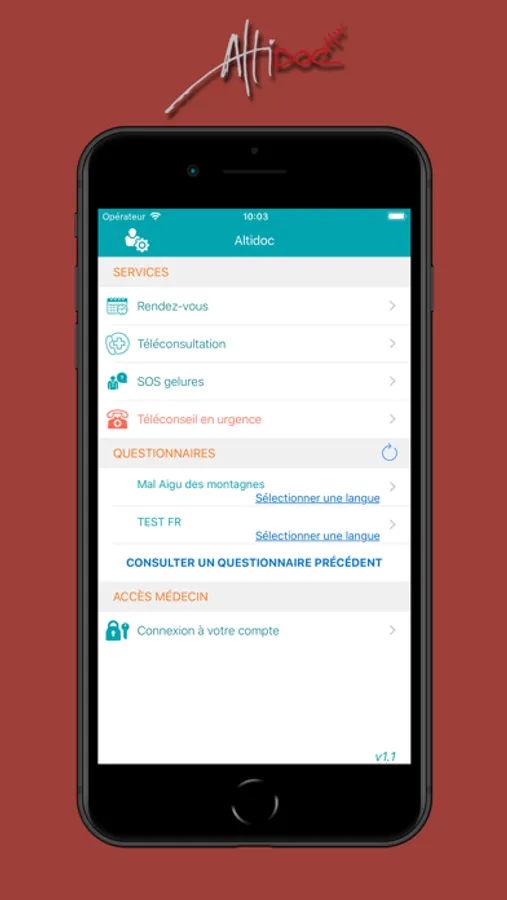 The Altidoc application allows you to obtain remote advice in the event of a stay in a hostile environment.