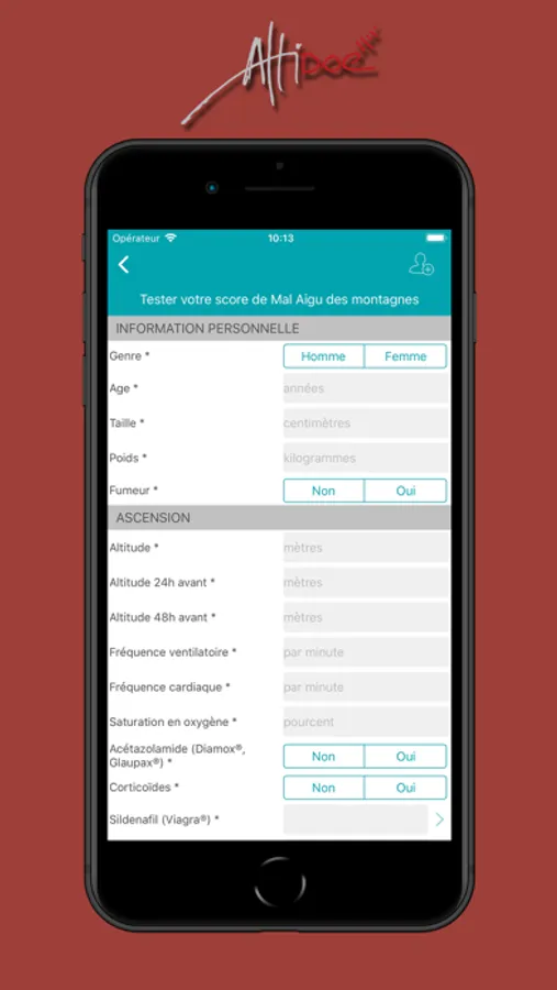 - You have the possibility to carry out a self-assessment of your acute mountain sickness score at any time during an ascent. You can retrieve your past evaluations at any time.