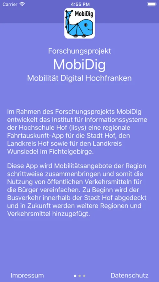 Im Rahmen des Forschungsprojekts MobiDig entwickelte das Institut für Informationssysteme der Hochschule Hof (iisys) eine regionale Fahrtauskunft-App für die Stadt Hof, den Landkreis Hof sowie für den Landkreis Wunsiedel im Fichtelgebirge.