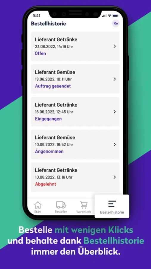 • Auch offline Bestellungen zusammenstellen: Greife von überall auf das Sortiment deines Lieferanten zu, auch offline, und stelle mit wenigen Klicks deine individuellen Bestelllisten zusammen.