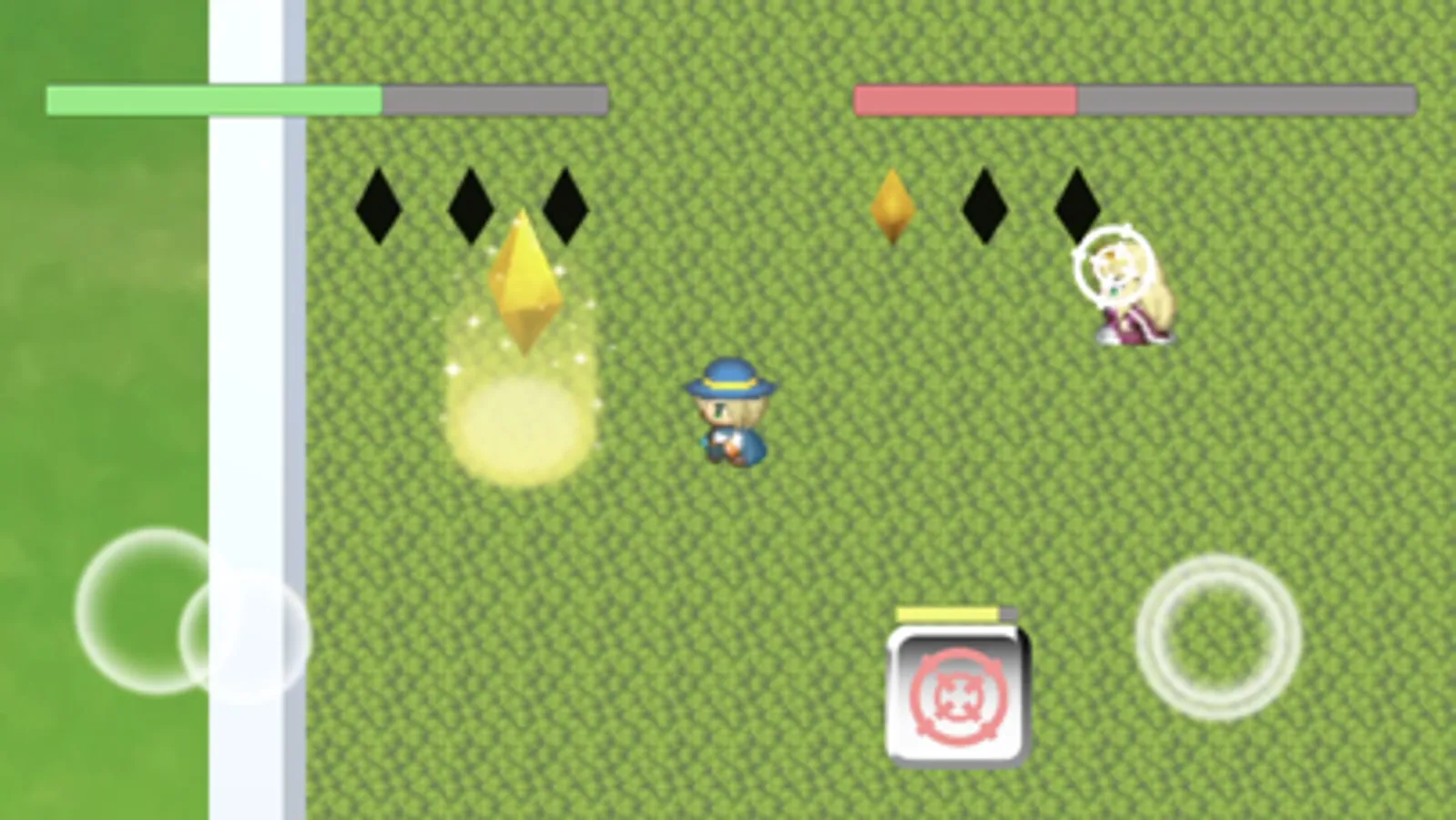 相手のHPを削りきるかステージ上に現れるクリスタルを先に3つ取ると勝利