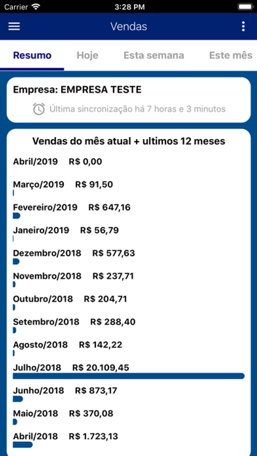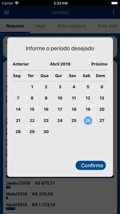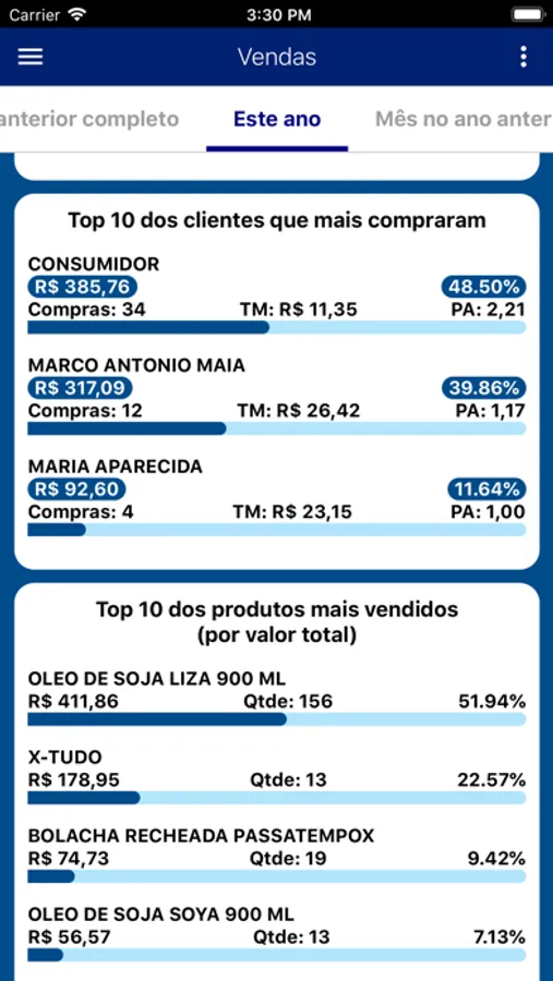 Nele você pode visualizar o resumo das vendas do dia, da semana, do mês, do ano e etc, de forma simples e rápida.