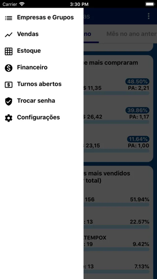 O App permite também que você acompanhe os turnos abertos, mostrando os saldos e informações do resumo das vendas de cada caixa.