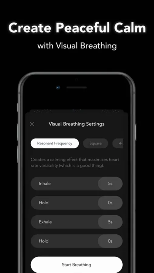 • Visual Breathing; the speed of visuals will automatically adjust to your selected breathing pattern.
